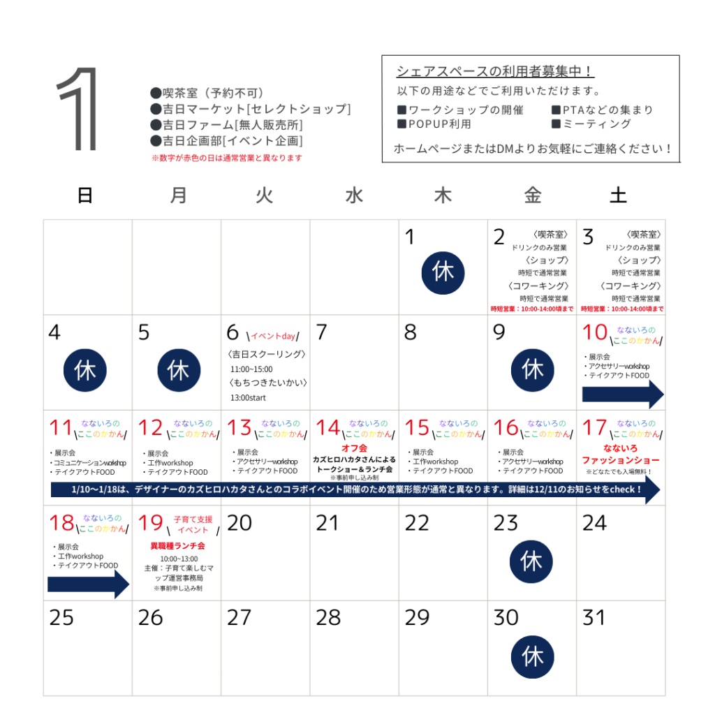 1月のカレンダーを更新しました。